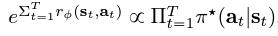 phi는 cumulative reward 가 joint probability density of actions given optimal policy에 비례하도록 한다.